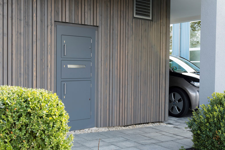 Für den Zusteller ist die Tür durch leichtes Anziehen zu öffnen. Er legt das Paket ein und schließt die Tür. Danach ist diese verschlossen.